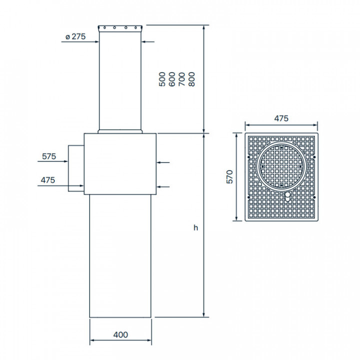 TALOS 9470 inox Borne escamotable 700 x Ø 275 x 4 mm - Finition INOX