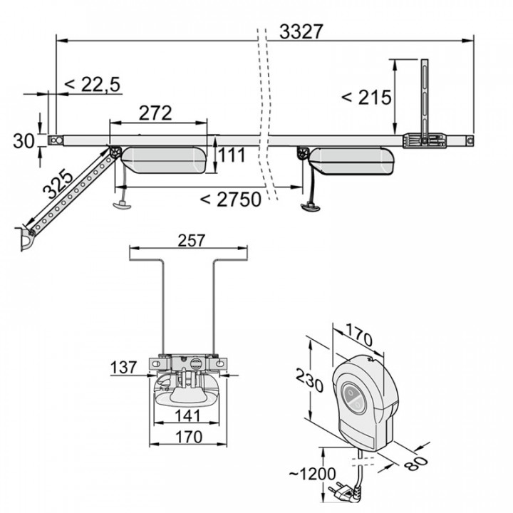S9060 PRO+ Motorisation de 600N pour porte de garage ,avec rail en 3 parties course de 2750mm et 2 émetteurs PEARL VIBE
